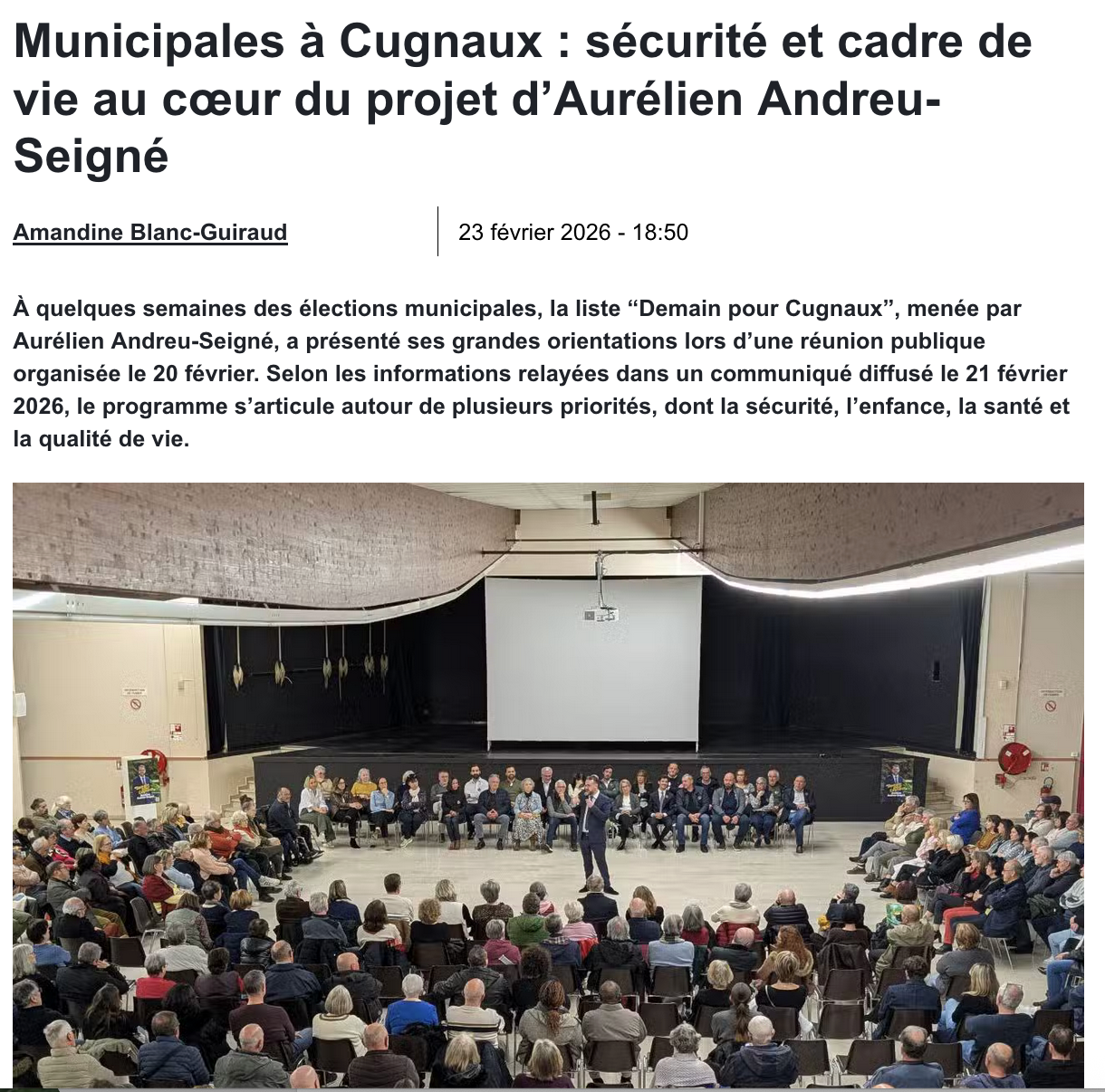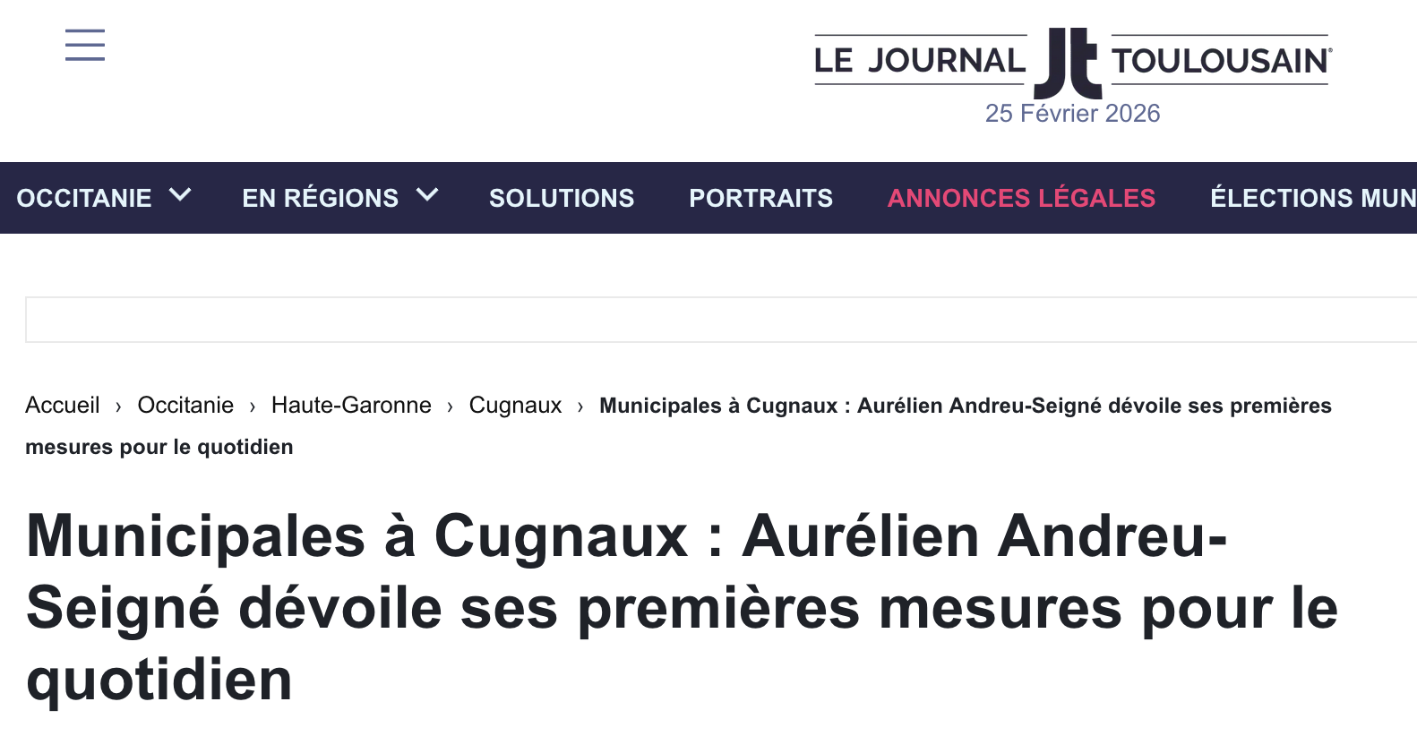 Municipales à Cugnaux : Aurélien Andreu-Seigné dévoile ses premières mesures pour le quotidien - Le journal toulousain