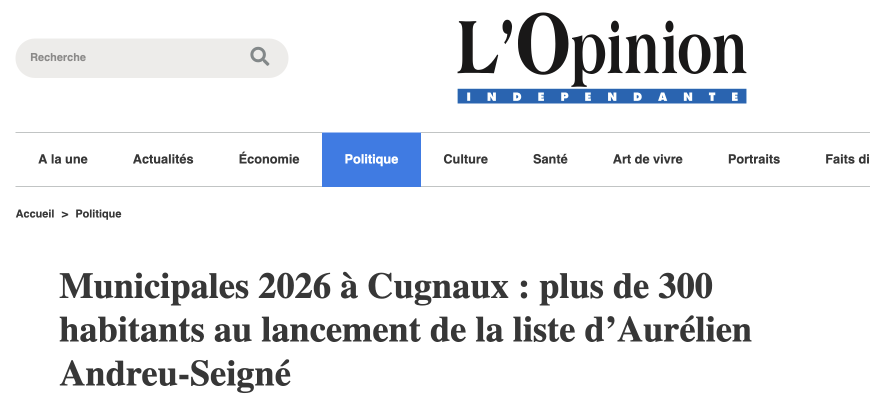Municipales 2026 à Cugnaux : plus de 300 habitants au lancement de la liste d’Aurélien Andreu-Seigné - L'Opinion Indépendante